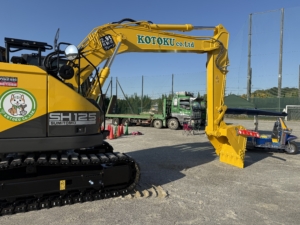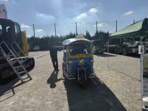 工事現場でしか見れないバックホウ(重機)やトゥクトゥクを展示