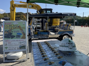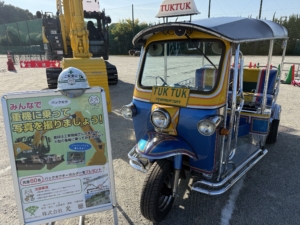 工事現場でしか見れないバックホウ(重機)やトゥクトゥクを展示